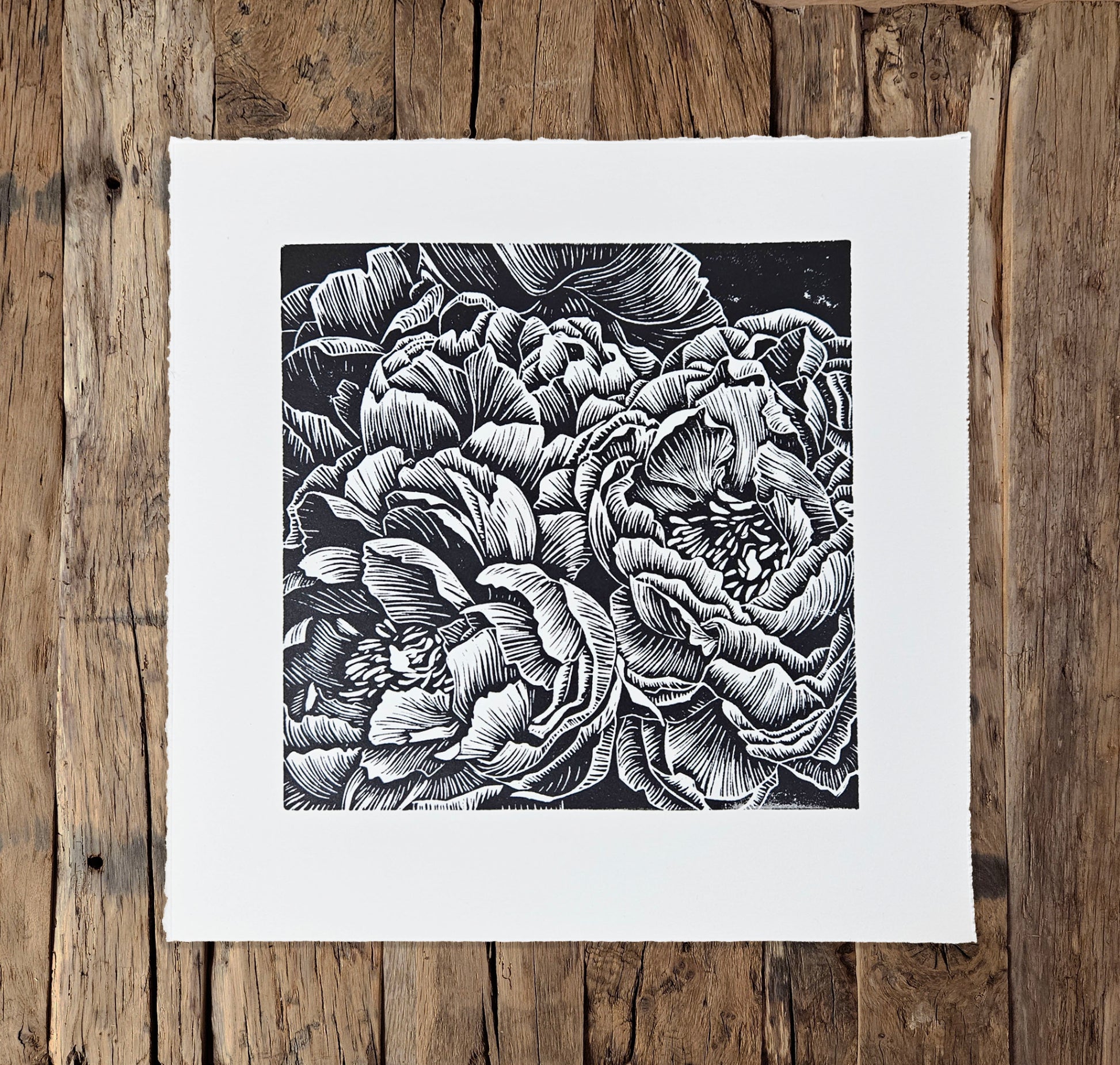 Bunch of Peonies linocut