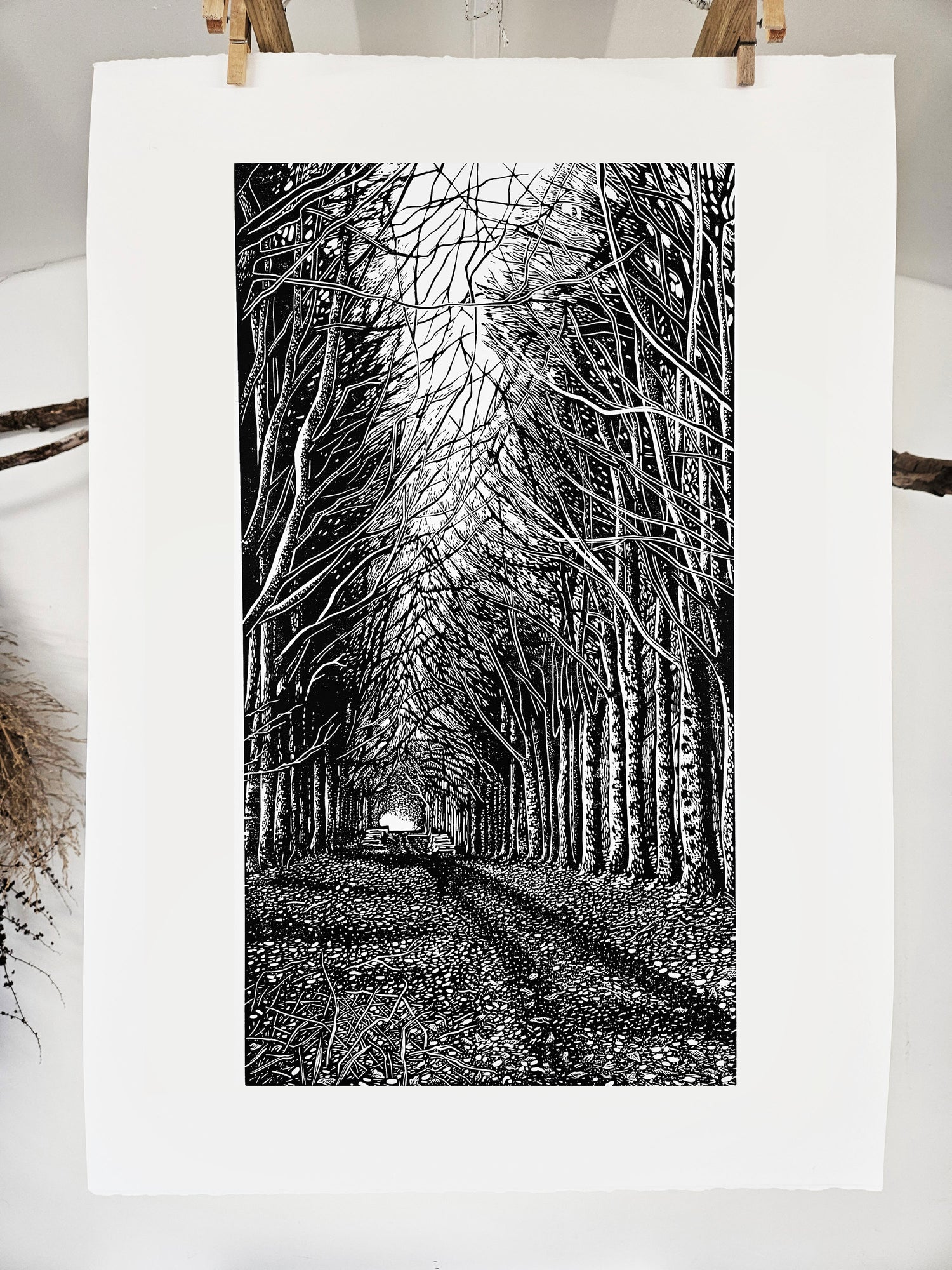 Printed by hand on beautiful 300gsm hot-pressed watercolour paper, this piece captures fine detail and subtle texture. Each print is unique, with slight variations that are part of its handmade character.